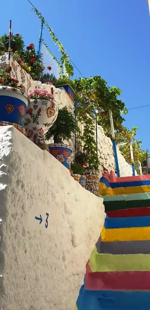 Tepeden aşağı inmeye devam ederken, şehrin bu şirin ve sakin bölgesinde meyve ağaçları ve çiçek bahçeleri olan şirin evlerin yanından geçeceksiniz.