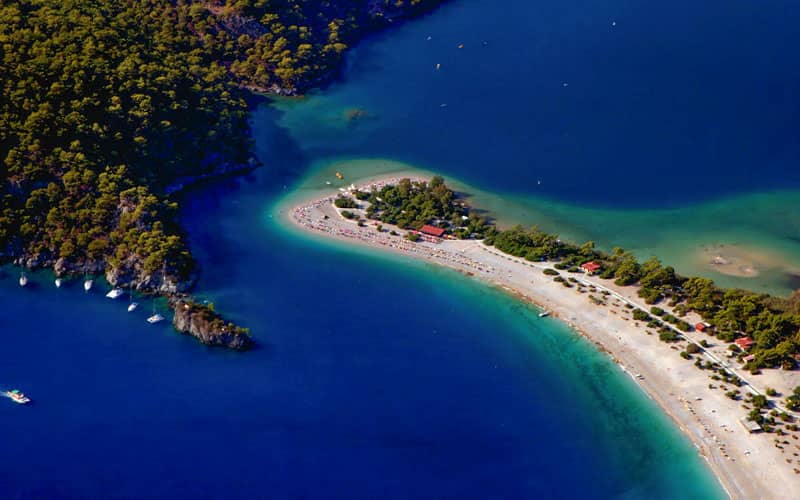 Ölüdeniz Lagün oluşumu denize göl niteliği kazandırıyor – Ölü deniz Fethiye yukarıdan görünümü
