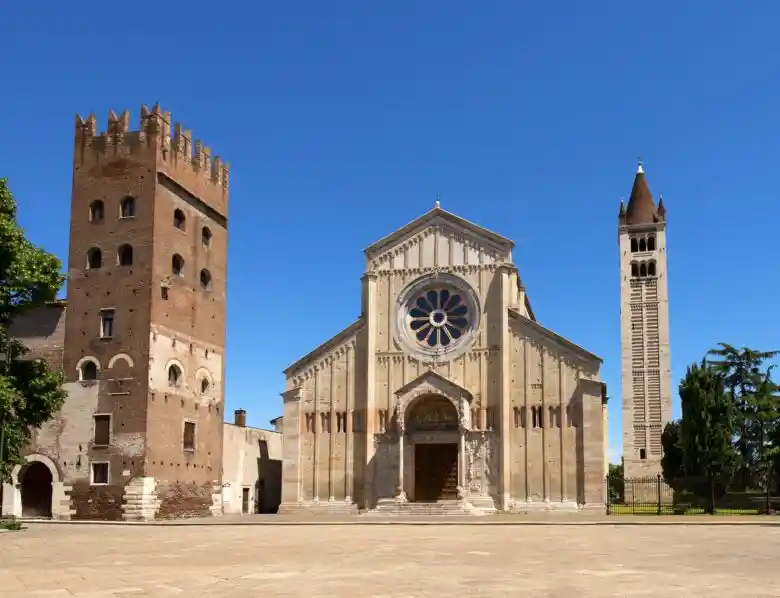 Verona’nın koruyucu azizini onurlandırmak için dikilen bu taş ve tuğla mücevherin nefi, 12. yüzyıldan 15. yüzyıla kadar fresklerle doludur ve 1457’de özenle restore edilmiş bir mihrap, Mantegna tarafından Bakire Majesteleri, muhteşem bir sanat dersi. perspektifin erken anlaşılması.