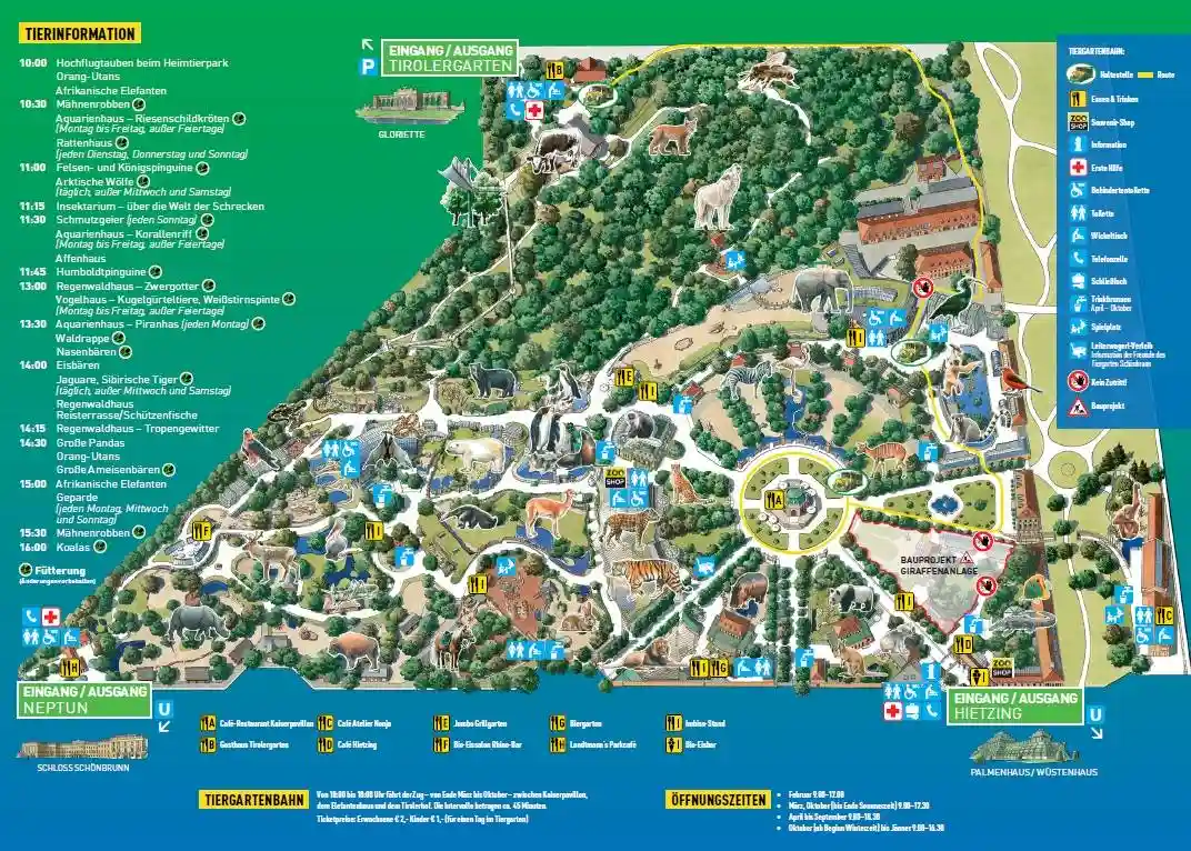 Tiergarten Schönbrunn, Schönbrunn Sarayı’nın geniş park ve bahçelerinde yer almaktadır. Hofburg Sarayı’ndan metroyla sadece yarım saat uzaklıktaki Hietzing, Viyana’dadır.